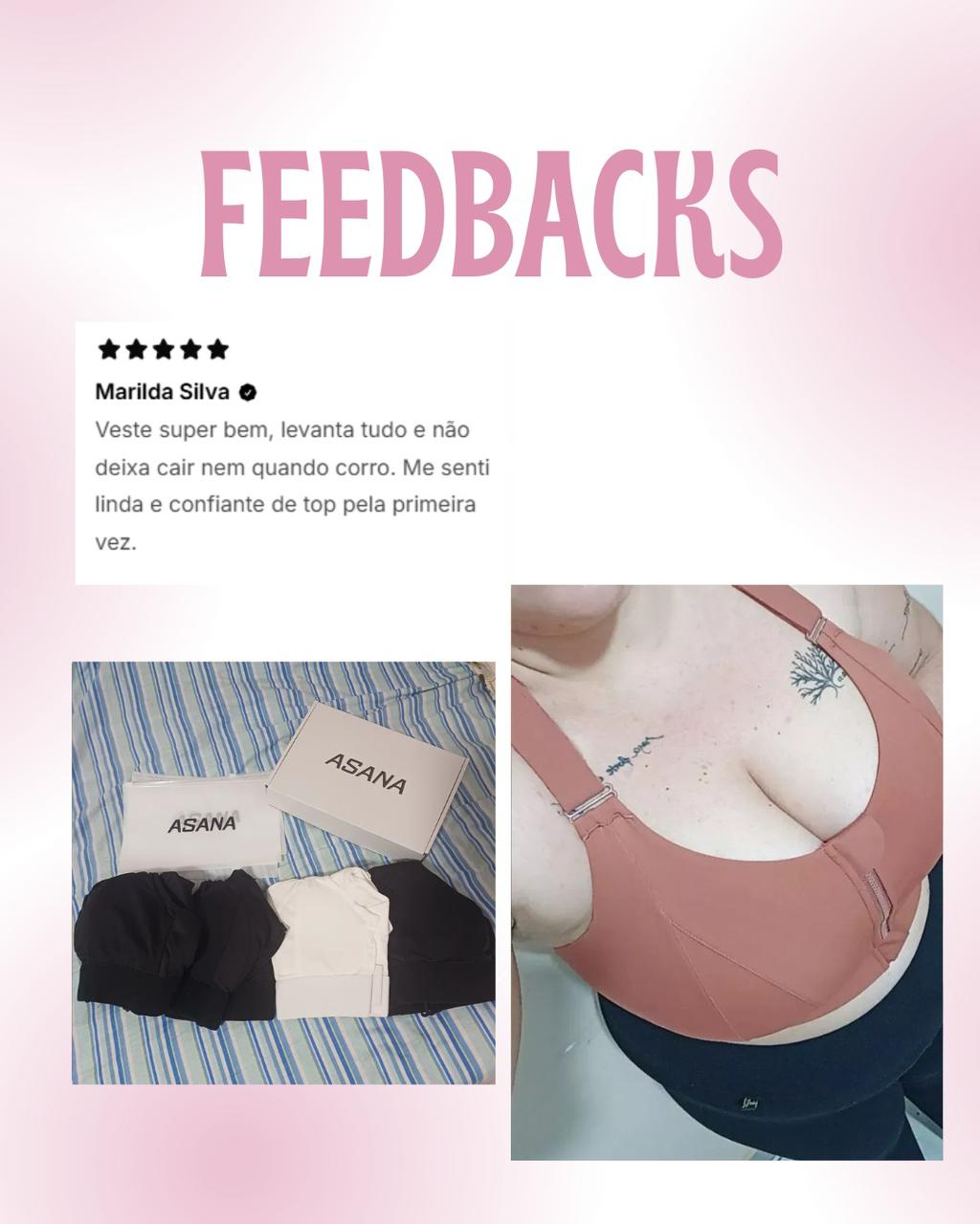 Nossos tops foram desenvolvidos com tecido de compressão inteligente e alças reforçadas — testados por mulheres com seios até tamanho G+. Elas aprovaram o conforto e sustentação até nos treinos mais intensos!